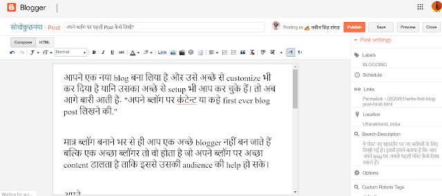 ब्लॉगर ब्लॉग में अपनी पहली पोस्ट कैसे लिखें?